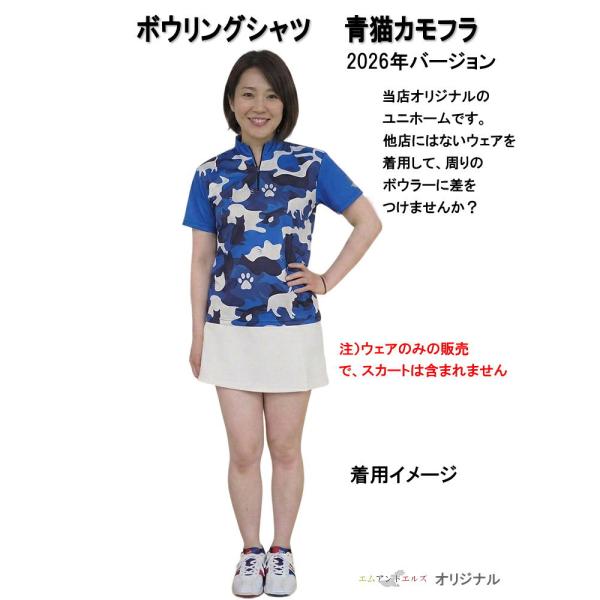 キャットカモフラ ブルー ボウリングウェア メンズ レディース OKA-6