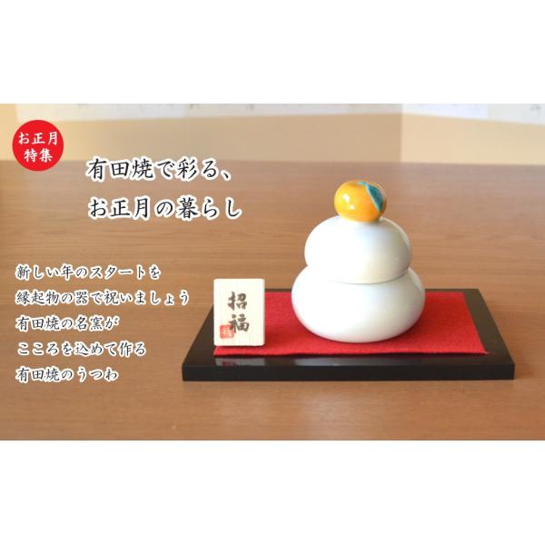 鏡餅 飾り 有田焼 陶磁器製 お正月 毎年繰り返し使える鏡もち 木台・招福 木札付