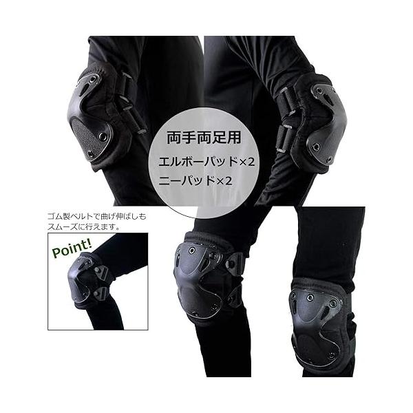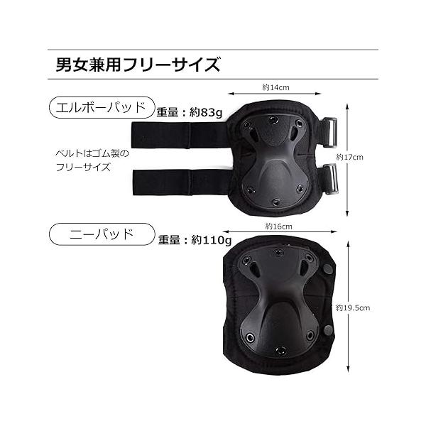 サバイバルゲーム プロテクター ニーパッド 肘当て 膝当て 膝パッド (ブラック) サバゲー 装備