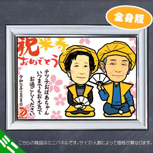 DFミニ 傘寿 米寿のお祝いディフォルメ似顔絵ミニパネル/ご長寿祝い/全身ポーズ無料対応/人数追加・サイズ変更対応/家族で記念のプレゼント