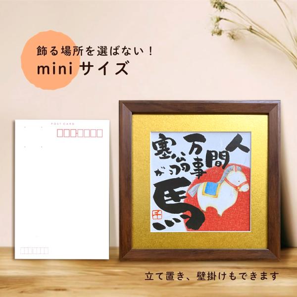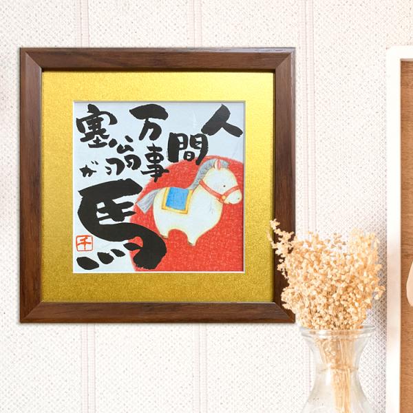 2026 令和8年 干支 馬 額絵 mini 金マット 人間万事塞翁が馬 ことわざ 午年 プレゼント 贈り物 お祝い 記念 ポエム 詩 ミニサイズ額入 ギフト かわいい イラスト