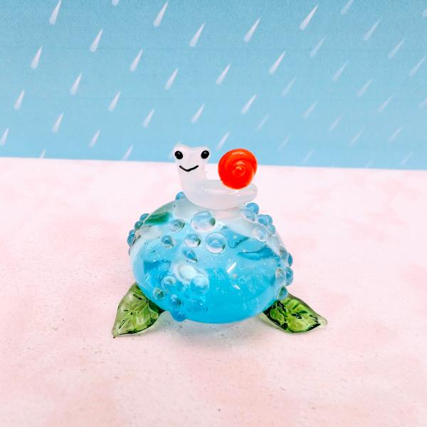 ガラス細工 アジサイとカタツムリ ミニチュア 雑貨 置物 小物 紫陽花