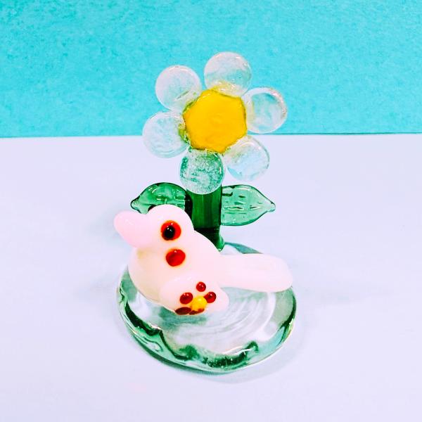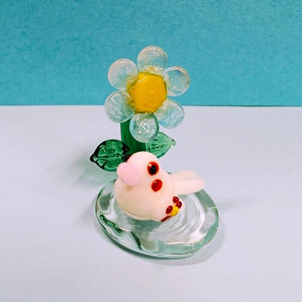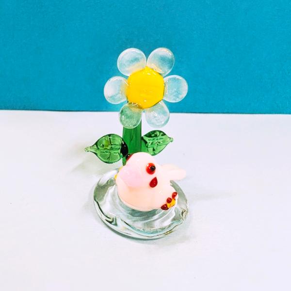 ガラス細工 花文鳥と忘れな草台(S) ミニチュア 置物