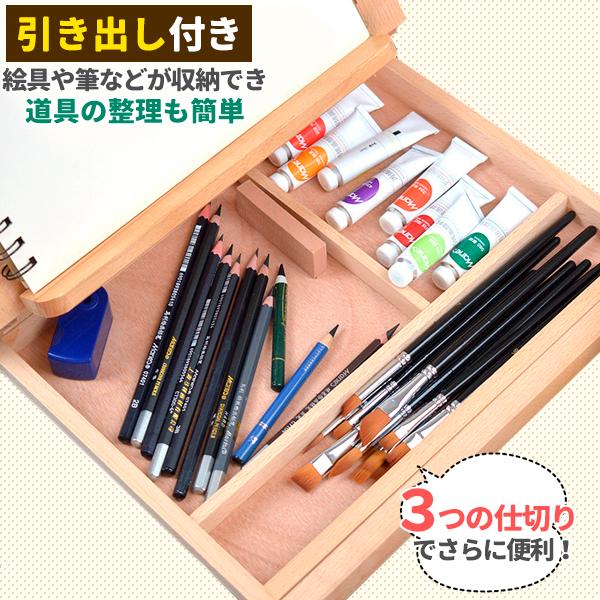 卓上イーゼル 折りたたみ式 卓上 イーゼル 木製 画板 イーゼルスタンド 持ち運び 引き出し 角度調節 小型 油絵 画材 水彩画 模写 スケッチ デスク