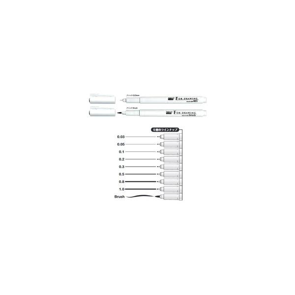 メール便可 マービー フォードローイング 単品 (0.03mm、0.05mm、0.1mm、0.2mm、0.3mm、0.5mm、0.8mm、1.0mm、Brush) ミリペン