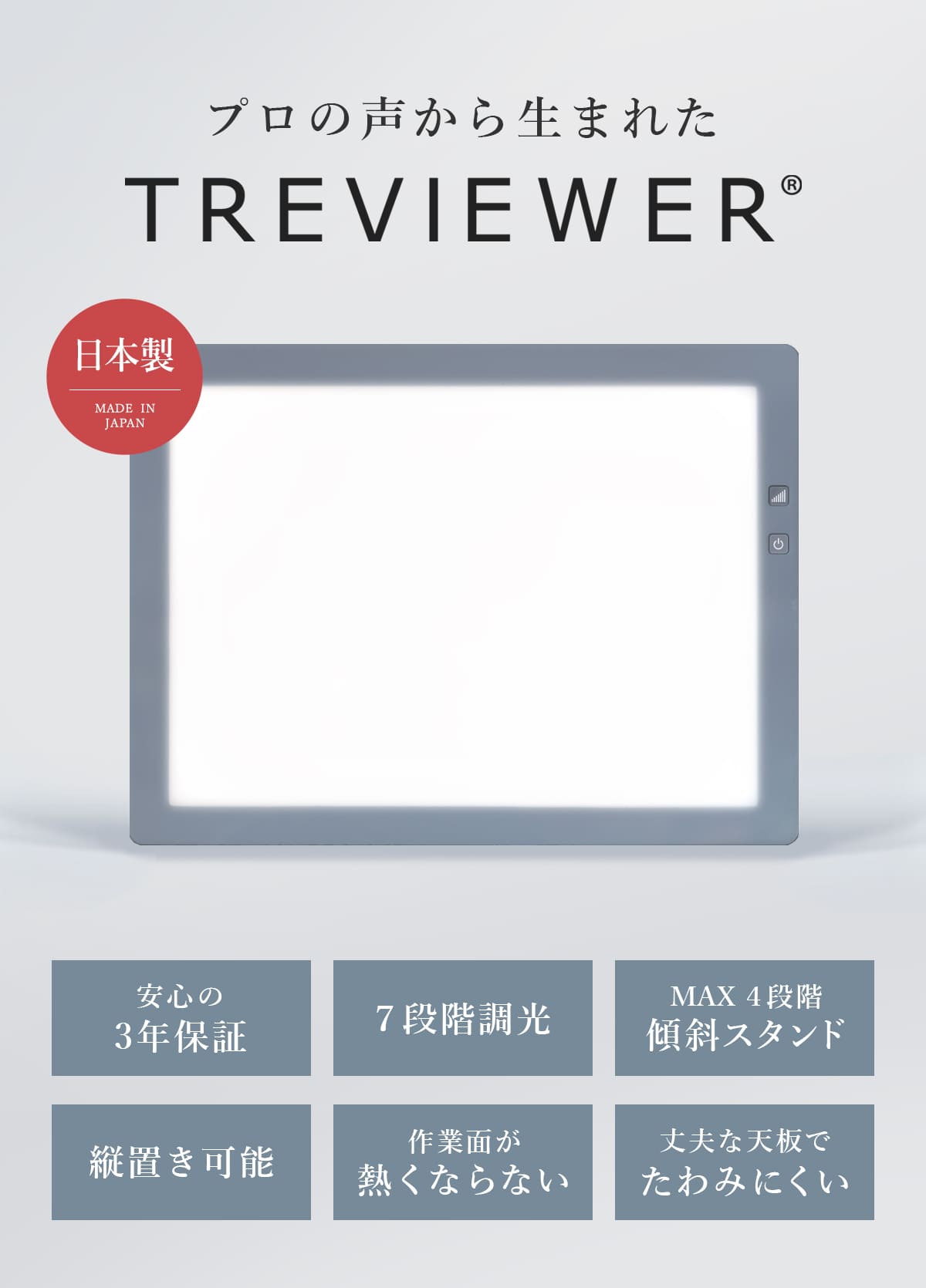 【日本製】 トレース台 トレビュアー A3 保護シート付 グレー 薄型 7段階調光 3年保証 A3-500-01 ライトボックス ライトボード ライトテーブル トライテック