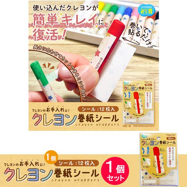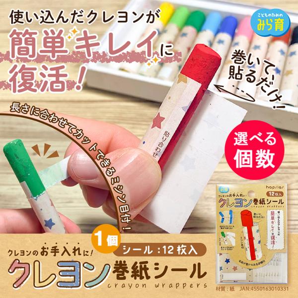 クレヨンシール 巻紙 シール 1個(12枚入り) カットミシン目付き クレヨン 簡単 キレイ 復活 便利 文具 ステーショナリー 幼児 キッズ 図工 おうち