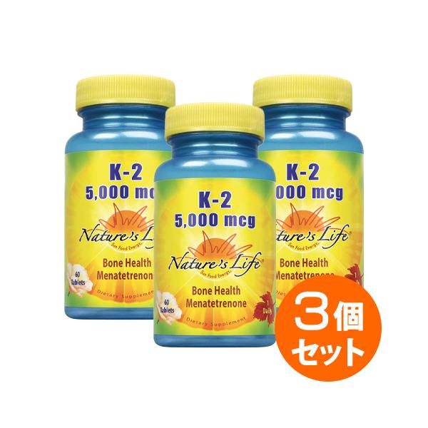 【3個セット】ビタミンK2 5000mcg 60粒 Nature's Life