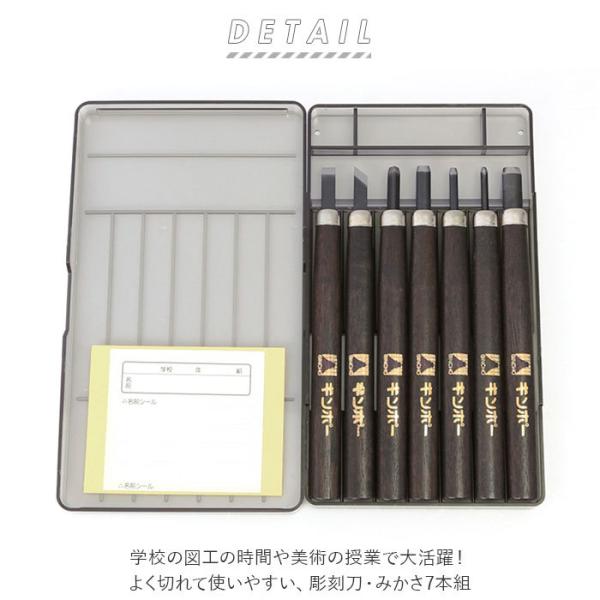 彫刻刀セット 7本 通販 彫刻刀 みかさ 7本組 セット 平刀 切出刀 角刀 丸刀 小丸刀 大丸刀 小切出刀 プラケース 銀鳥産業 文具 彫刻 工作 図工 彫刻刀セット