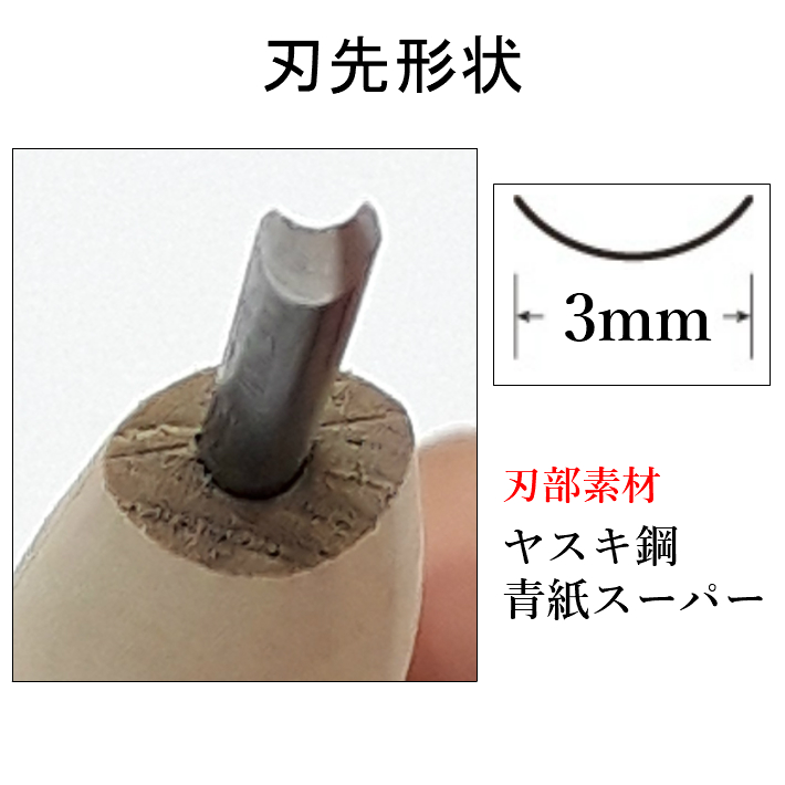 三木章刃物本舗 三代三木章作 安来鋼 彫刻刀 丸型 3mm【ネコポス】