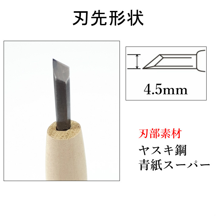 三木章刃物本舗 三代三木章作 安来鋼 彫刻刀 キワ刀(印刀) 4.5mm【ネコポス】