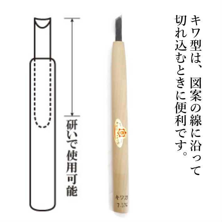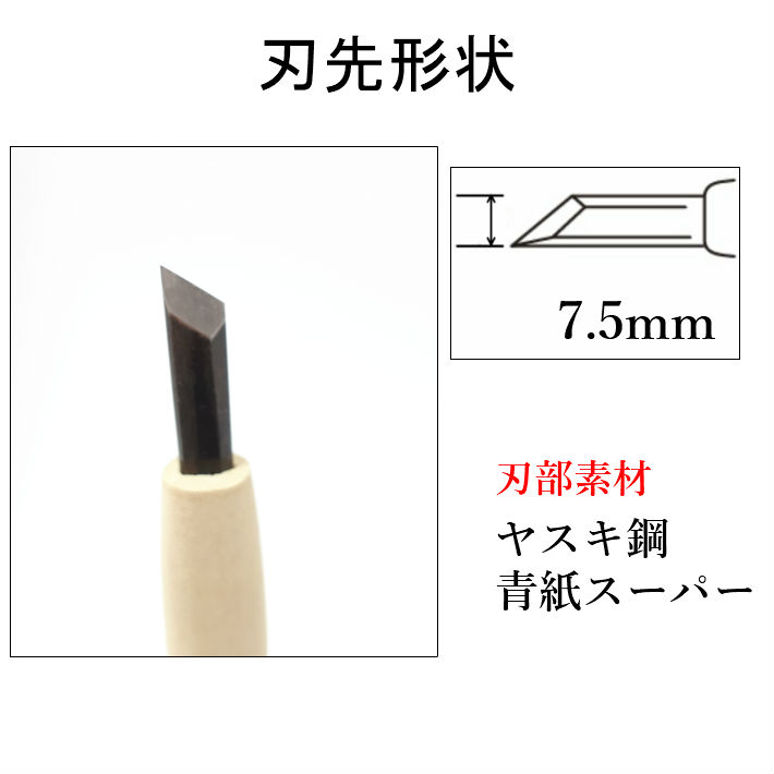 三木章刃物本舗 三代三木章作 安来鋼 彫刻刀 キワ刀(印刀) 7.5mm【ネコポス】