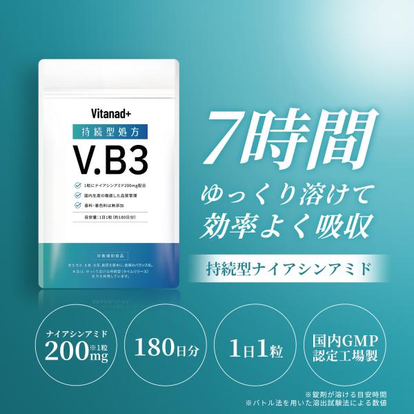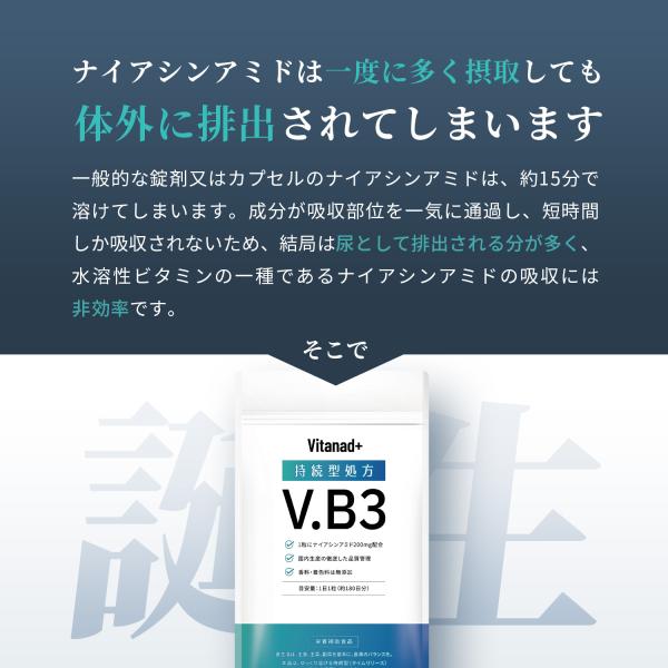 持続型 ナイアシンアミド サプリ (ナイアシンアミド36000mg高配合/180日分) vb3 ビタミンb3 ニコチン酸アミド niacinamide 国産 日本製 Vitanad+(ビタナッド)