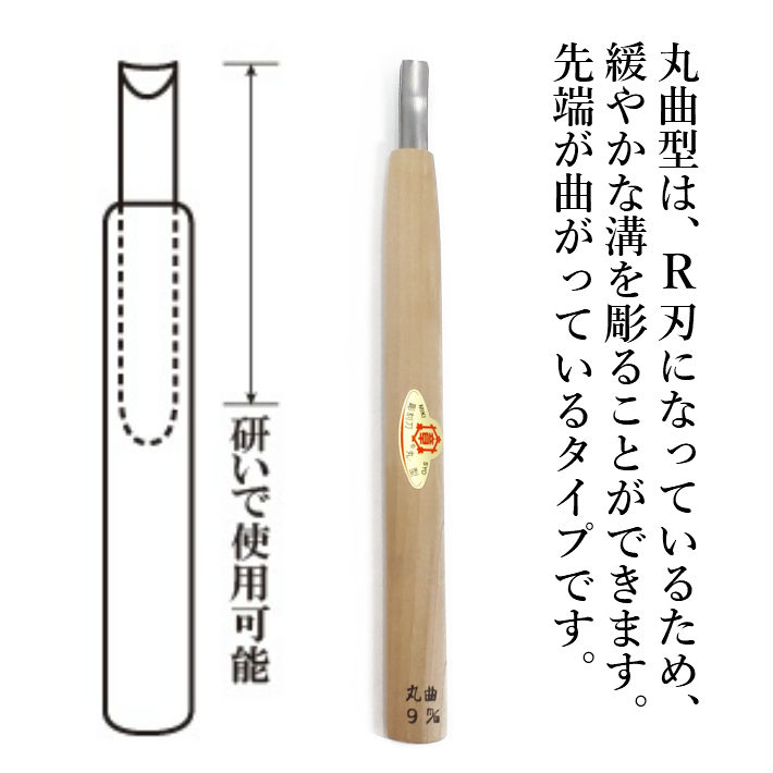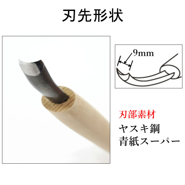 三木章刃物本舗 三代三木章作 安来鋼 彫刻刀 丸曲型 9.0mm【ネコポス配送】