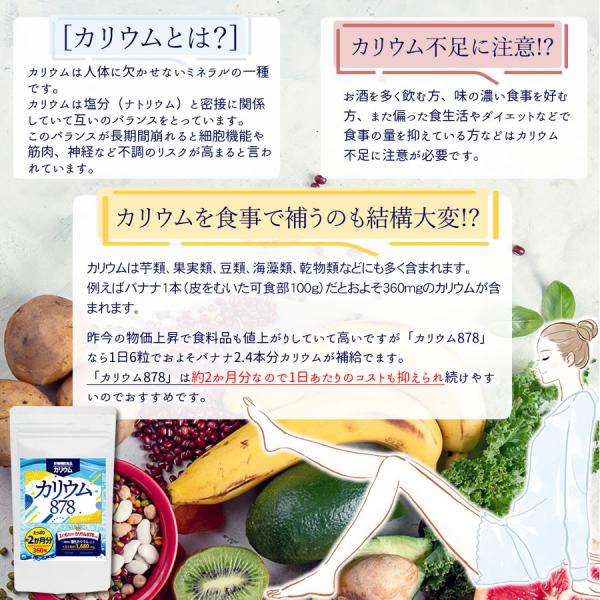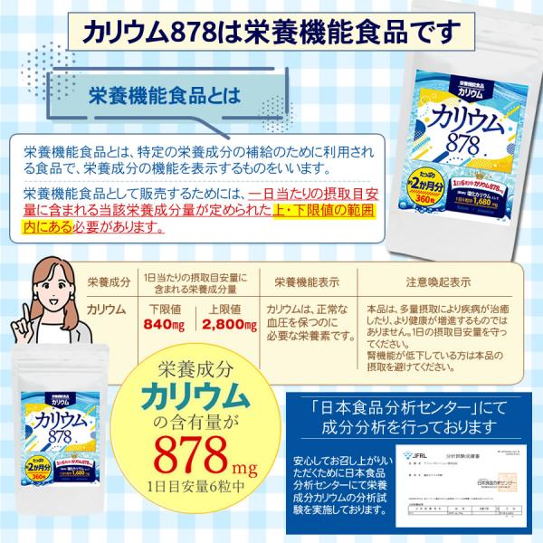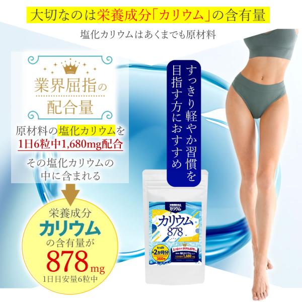 カリウム サプリ 約2か月分 360粒 塩化カリウム 1680mg 高配合 多い 栄養機能食品 カリウム 不足 補給 塩 塩分 バランス 血圧 健康 サプリメント カリウム878