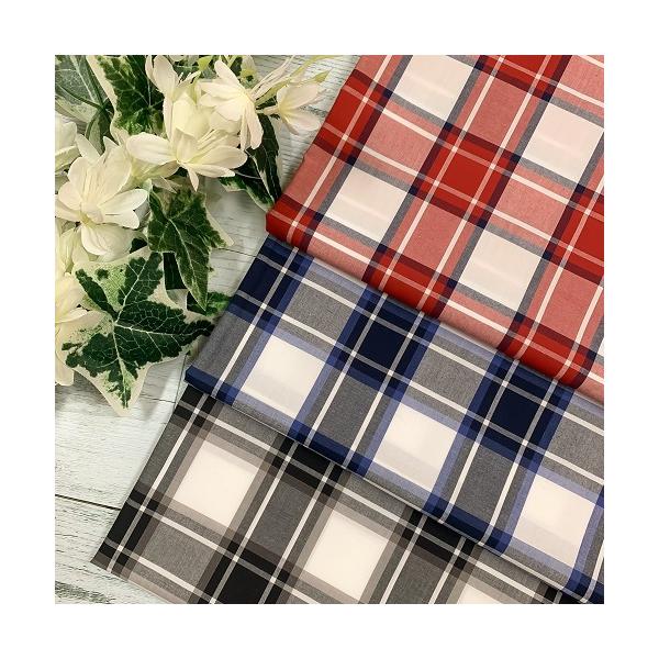 【50cm単位】【3mまでメール便対応】コットン チェック 青 赤 茶色 生地 日本製 布 綿100% 先染め ハンドメイド