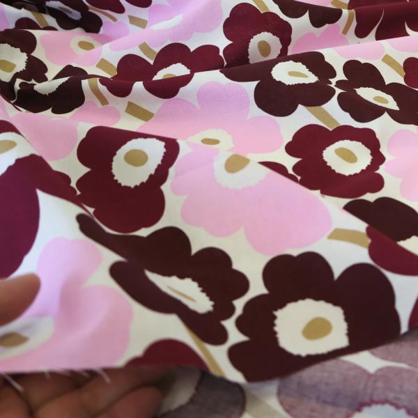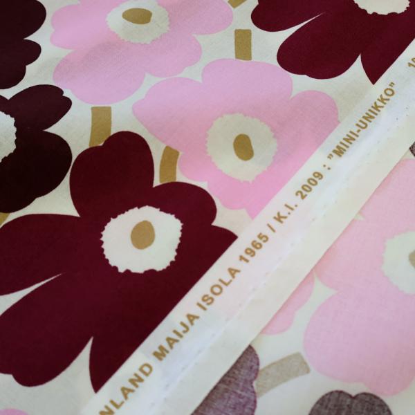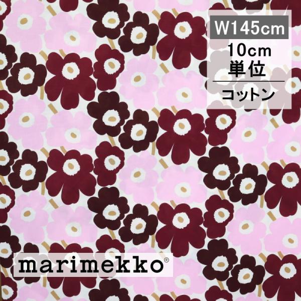 マリメッコ 生地 ミニウニッコ ボルドー ピンク No.143 巾145cm 10cm単位 切り売り MINI UNIKKO 手作り 2025 日本限定 花柄 おしゃれ 正規 marimekko 北欧