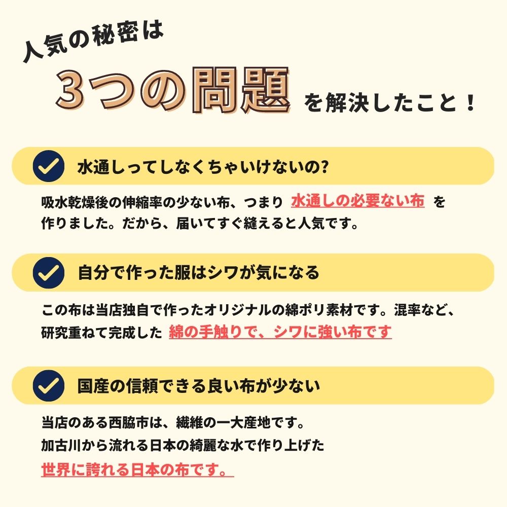 3mm ギンガムチェック 生地 綿ポリダンガリー 布 日本製 110cm幅 50cm単位 しわになりにくい 水通し不要 生地のマルイシ