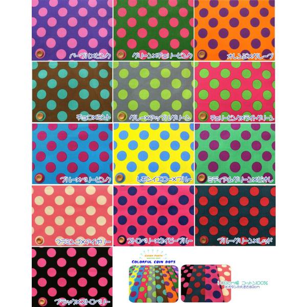 Candy Party カラフル コインドット シーチングプリント生地