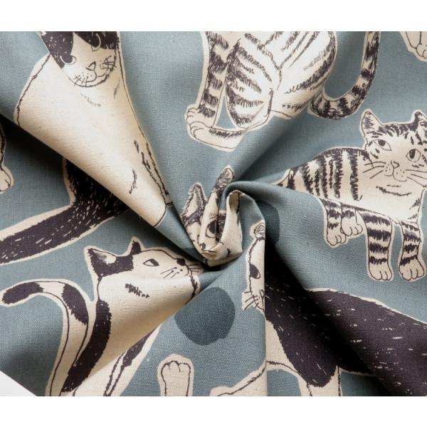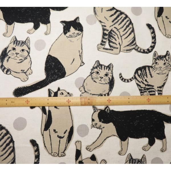 生地 猫柄 108cm巾 綿麻キャンバス≪BIG cat 猫と暮らし≫(7110) 日本製【10cm単位】 コットンリネン 布 バッグ布 ねこ柄 コットンこばやし エプロン ポーチ