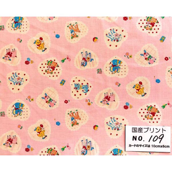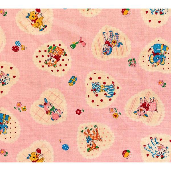 55cmX45cm 生地 松山敦子 YUWA ベイビーアニマル ハート 有輪 入学入園 布 国産プリント・109 ★