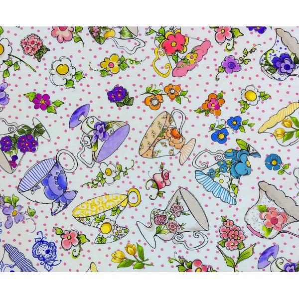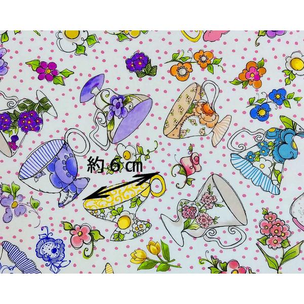 55cmX45cm 生地 ロラライハリス ティーカップ ドット柄 布 USAコットン・103 ■