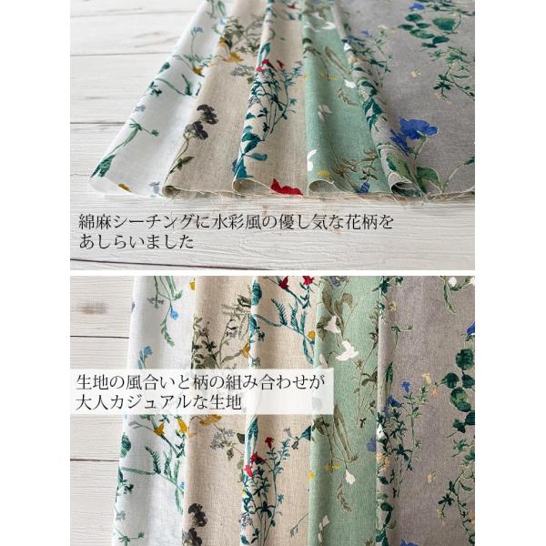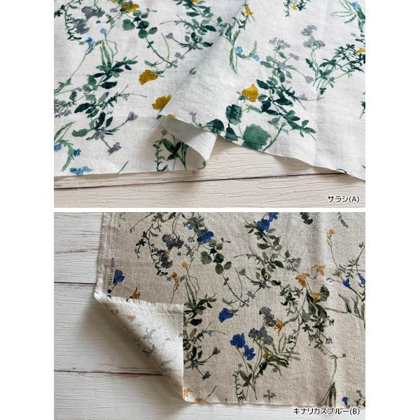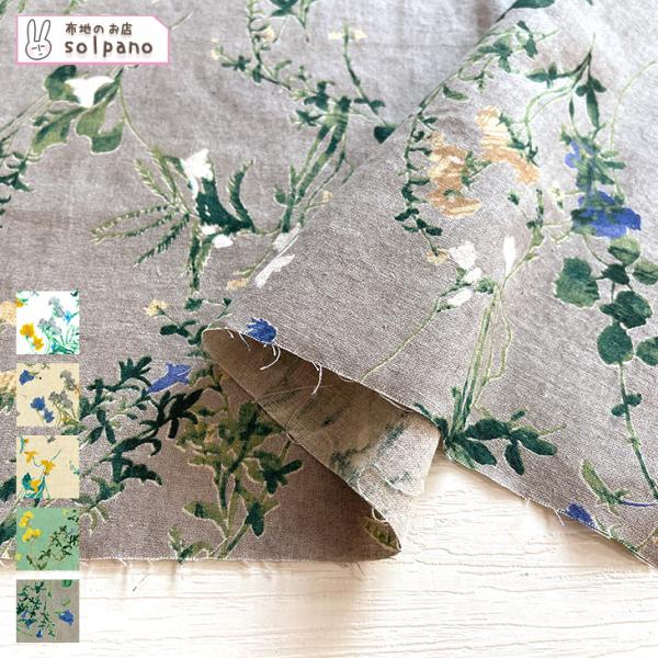 現物限り 綿麻シーチングプリント エンジェルソフト加工 布 生地 手作り 花柄 ボタニカル柄 カット50cm単位(商品番号:sol28082)