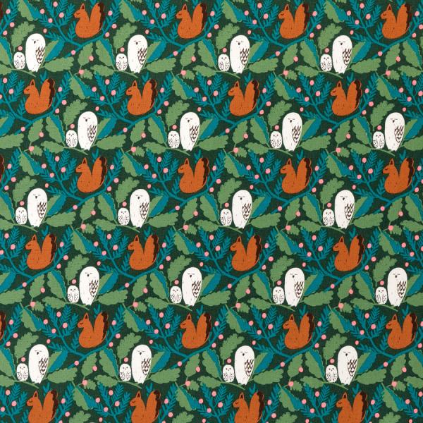 オックス 生地 Kippis キッピス フクロウ リス メッツァンラウハ 森の平和 50cm 北欧 カットクロス