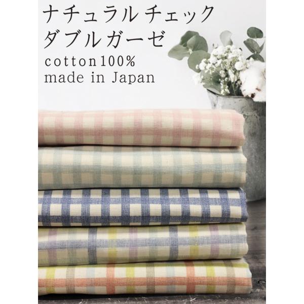 ナチュラルチェック柄ダブルガーゼ生地 5色 B88180Z3 北欧 赤ちゃん 子供 ベビー パジャマ 手ぬぐい タオル 50cm単位2.5mまでネコポス可
