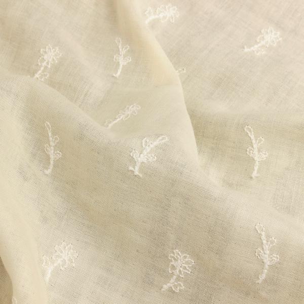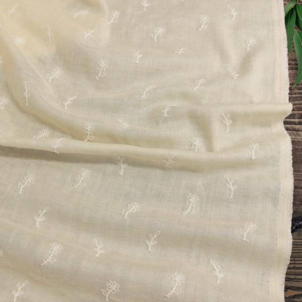 オーガニック コットン ダブルガーゼ tanpopo タンポポ 柄 刺繍 生地 生成り×ホワイト 10cm単位 品番syo-2008 3mまでネコポス可
