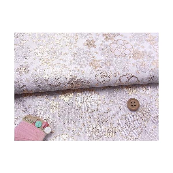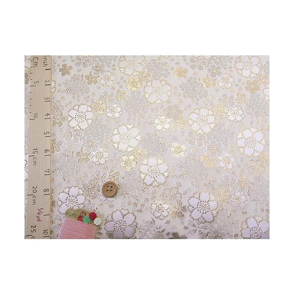 金襴生地(金らん)きらめき桜(白) 10cm単位 切り売り