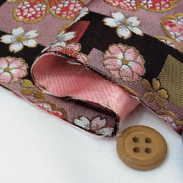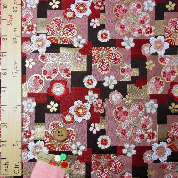 金襴生地(金らん)色紙文にモダン桜(黒/赤) 10cm単位 切り売り