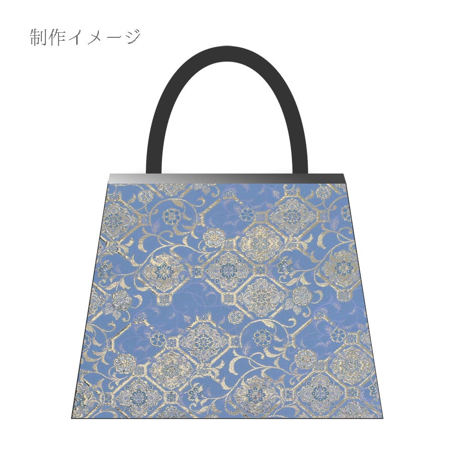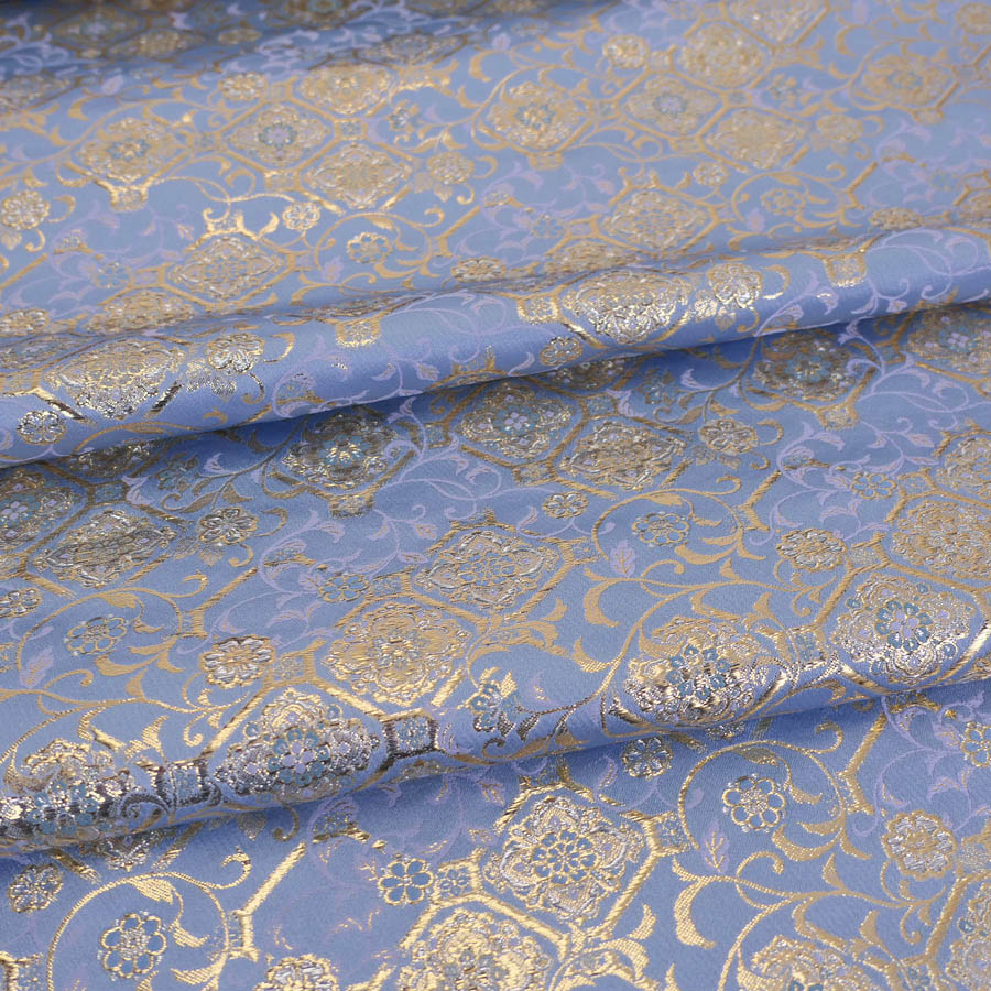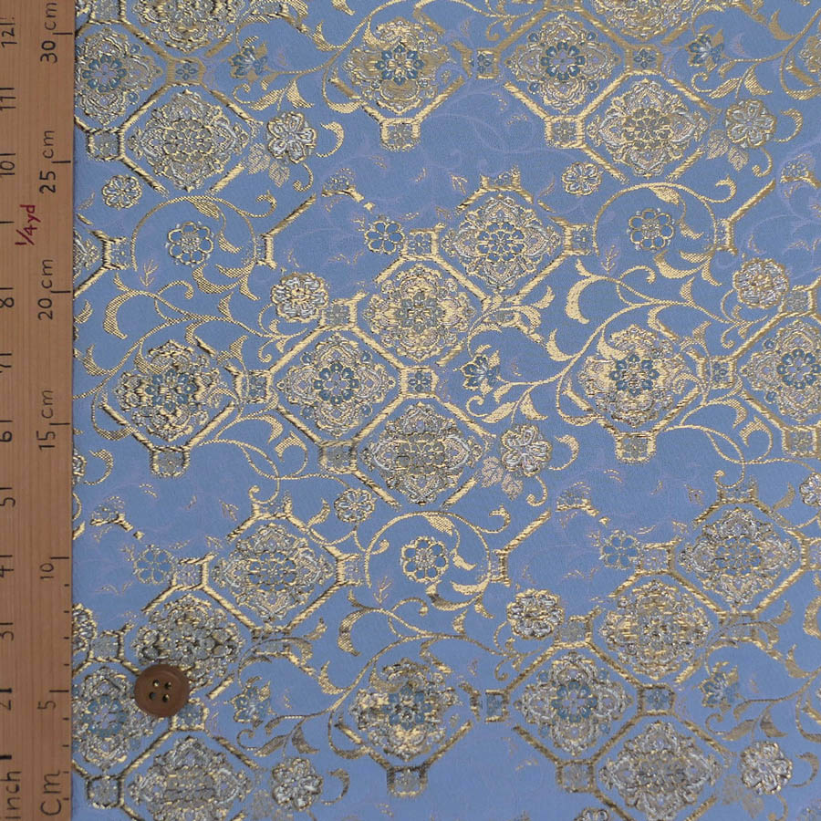 金襴生地(金らん) 斜め格子につる草と唐花柄(水色) 10cm単位 切り売り