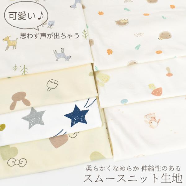 生地 スムースニット 可愛い 動物 星 ハート リボン 綿100% ■ 伸縮 柔らか 服 夏服 ドッグ 手作り 手芸 ハンドメイド ■ BGK FB