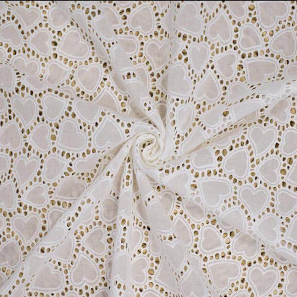 綿レース生地 マスク用生地 A005 綿100% カット ハート柄 ローンレース生地 刺繍 マスク素材手芸130cm*50cm