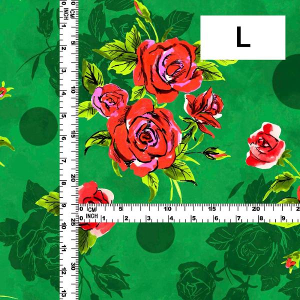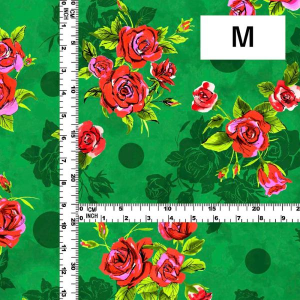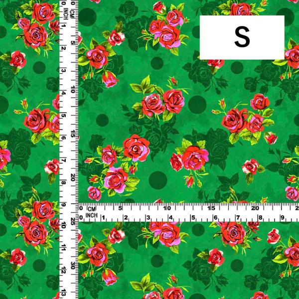 フラメンコ生地 ローズ×水玉柄 コシボ・シャンタン・ストレッチベロア選べる生地 ターコイズブルー KF-203-TBL 3-5営業日後発送