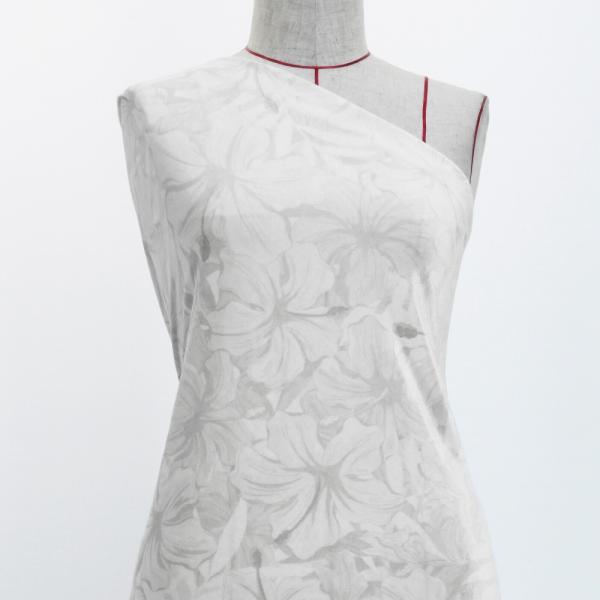 ハワイアン生地 ハイビスカス柄 コシボ・シャンタン・ストレッチベロア選べる生地 ホワイト KH-616-WH 3-5営業日後発送