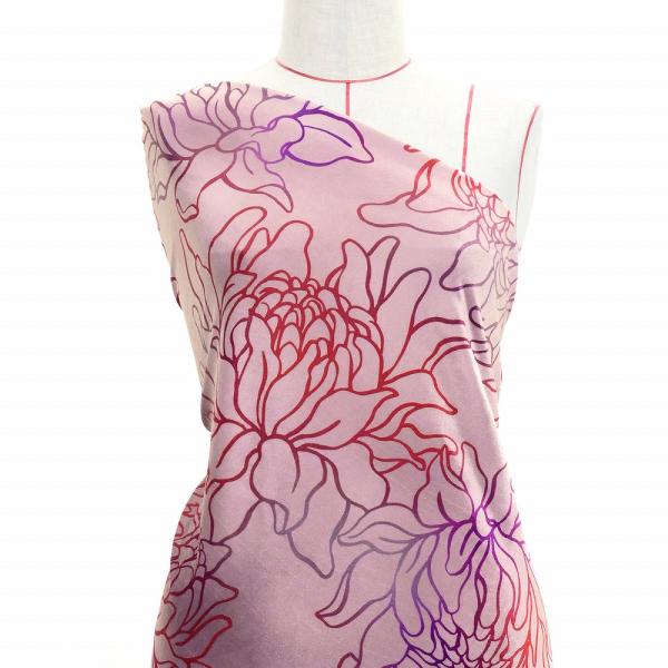 ハワイアン生地 プロテア柄 コシボ・シャンタン・ストレッチベロア選べる生地 ピンク KH-694-PI 3-5営業日後発送