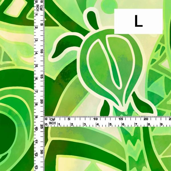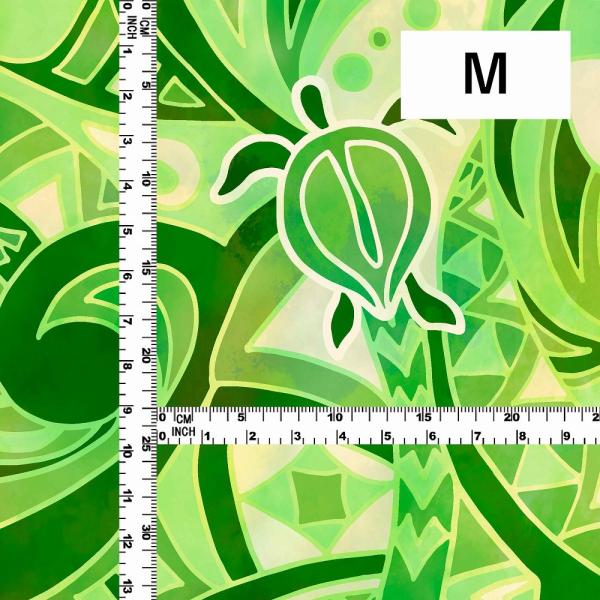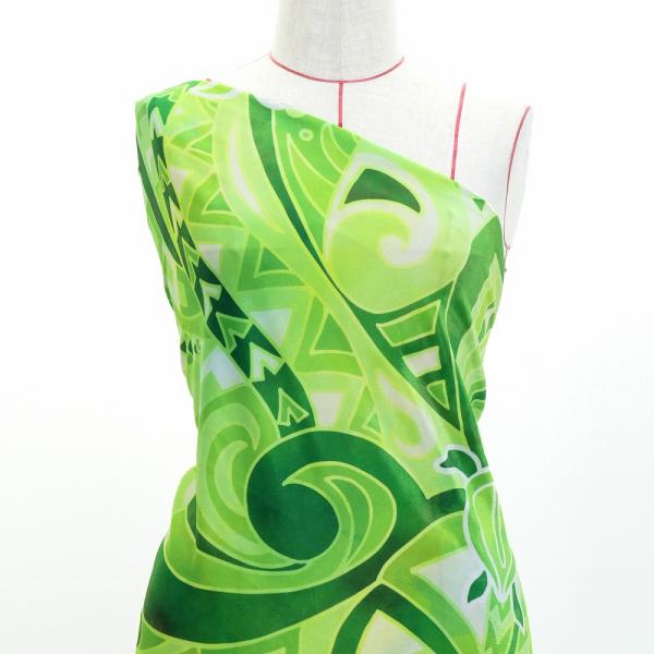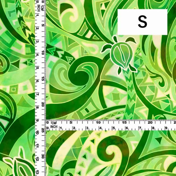 ハワイアン生地 ホヌ×カヒコ柄 コシボ・シャンタン・ストレッチベロア選べる生地 グリーン KH-696-GR 3-5営業日後発送
