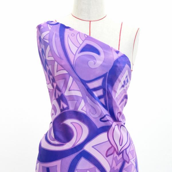 ハワイアン生地 ホヌ×カヒコ柄 コシボ・シャンタン・ストレッチベロア選べる生地 パープル KH-696-PU 3-5営業日後発送
