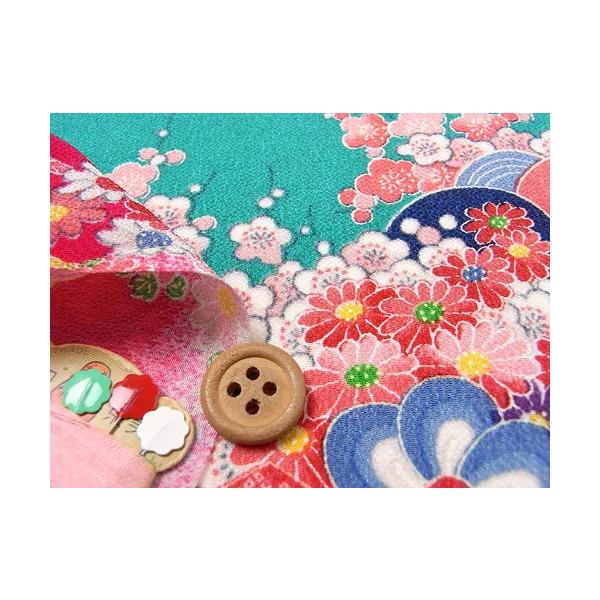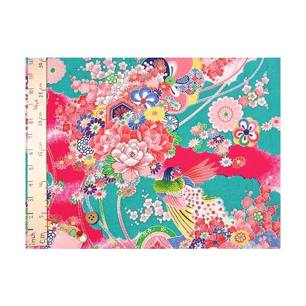 一越ちりめん・花孔雀(青緑) 10cm単位 切り売り