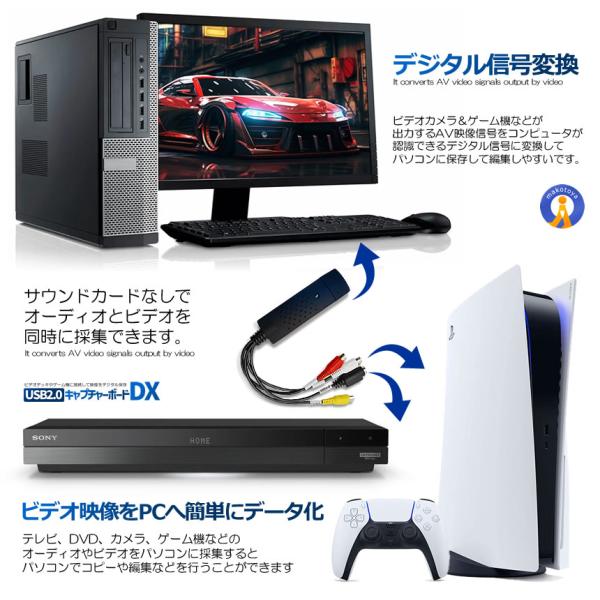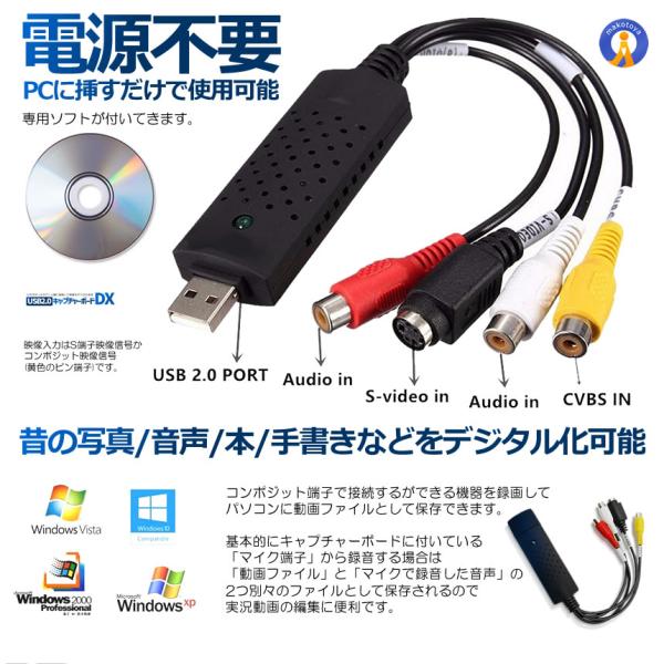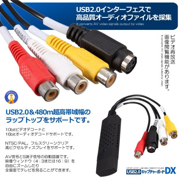 ビデオキャプチャ― コンポジット 変換アダプター USB変換 S端子 赤 白 黄 アナログ 変換ケーブル ゲーム配信 録画 テレビ ビデオ モニター PC パソコン EGOCAP