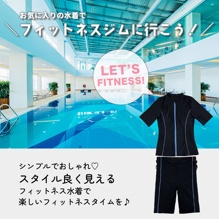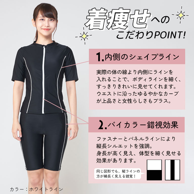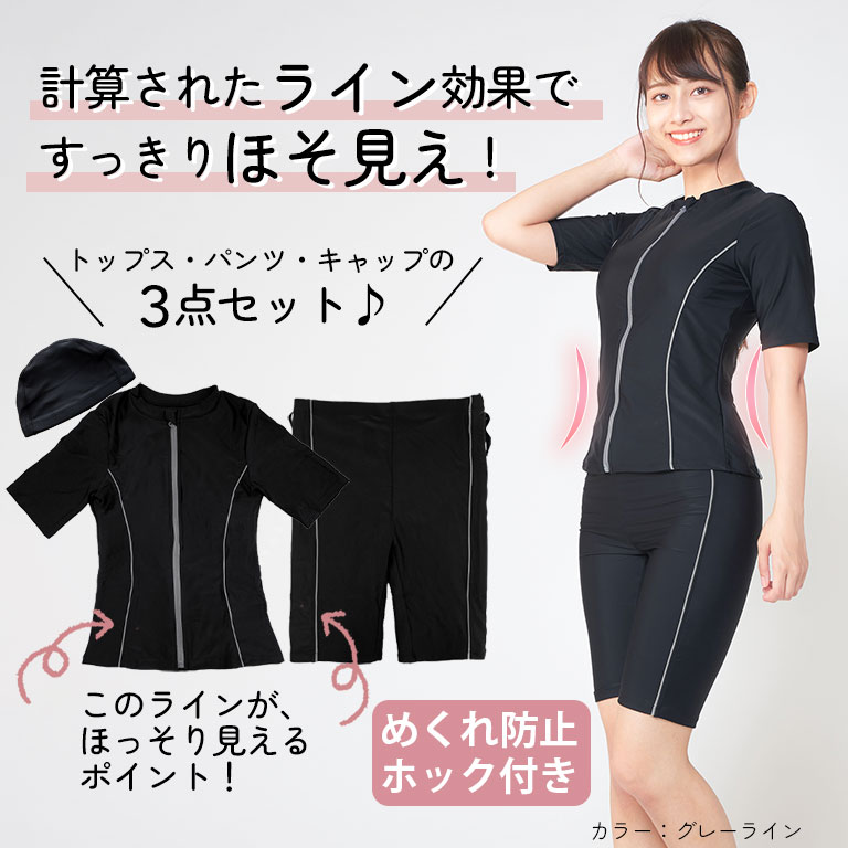 フィットネス水着 レディース 半袖 セパレート セット 着痩せ キャップ付き めくれ防止 大きいサイズ 前開き 体型カバー 水泳 ジム ft002