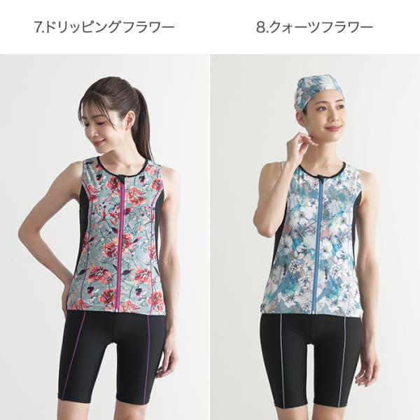 フィットネス 水着 プリント レディース フィットネス水着 スイムキャップ 大きいサイズ 体型カバー かわいい フィットネス セパレート ママ 水着 レディース