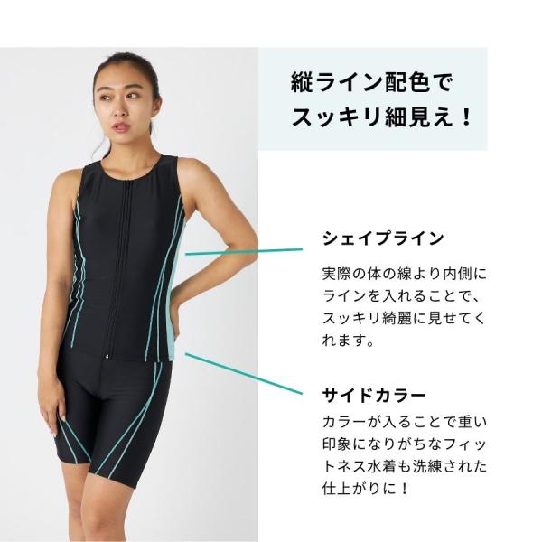 フィットネス水着 レディース 体型カバー ノースリーブ セパレート 大きいサイズ タンキニ おしゃれ 50代 40代 30代 競泳水着 パッド付き 316181n
