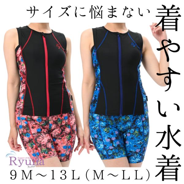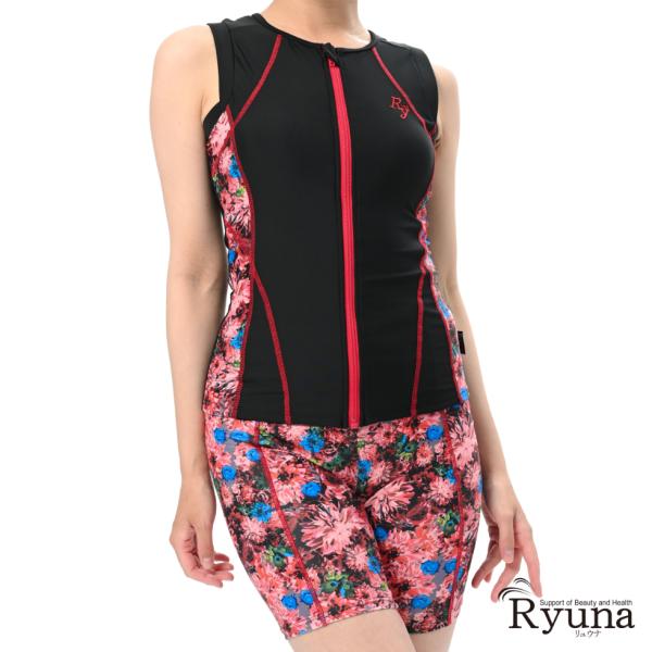 フィットネス水着 ジム用水着 レディース セパレート ノースリーブ M L LL 9M 11L 13L 体型カバー ママ プール ジム 大きい GR2205F