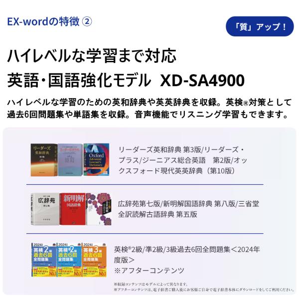 カシオ 電子辞書 高校生 エクスワード XD-SA4900 ホワイト ブラック ブルー ピンク CASIO 電子辞書 EX-word 広辞苑 リーダーズ英和辞典 リーダーズ プラス