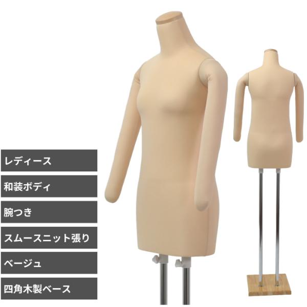 和装ボディ 腕付き ベージュ 木製台 国産 日本産 着物用マネキン 和装トルソー KA-28