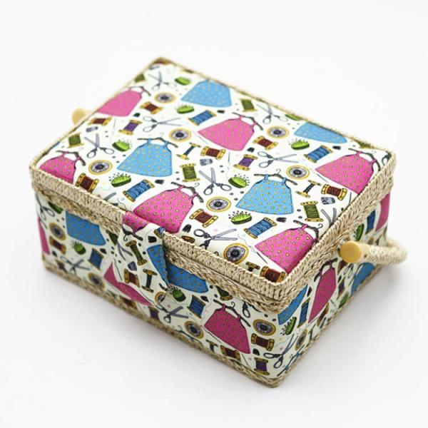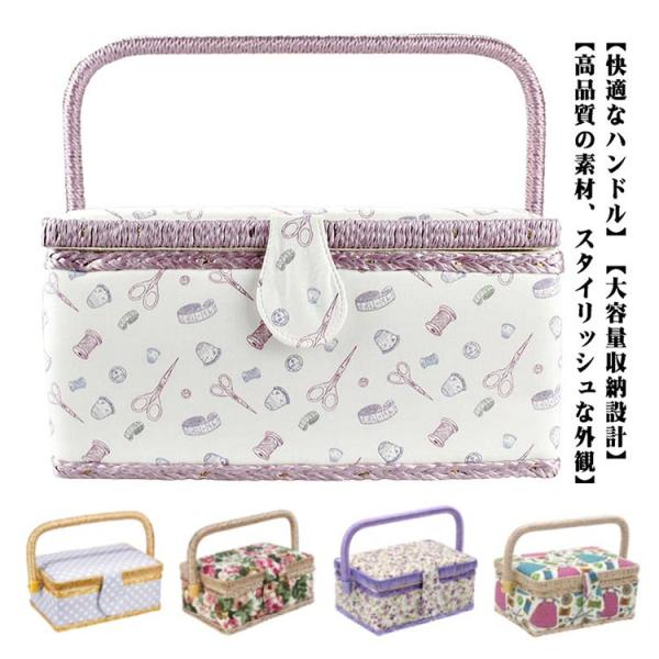 かわいい 道具箱 収納BOX 花柄 北欧 手芸箱 収納ケース ソーイングボックス 持ち手式 木製 ソーイングボックス 裁縫箱 家庭用 小物入れ ミシン