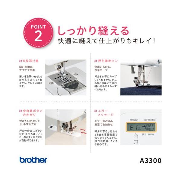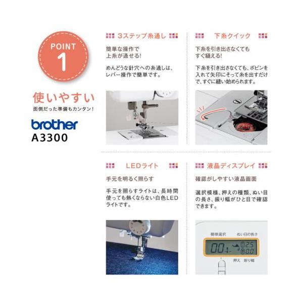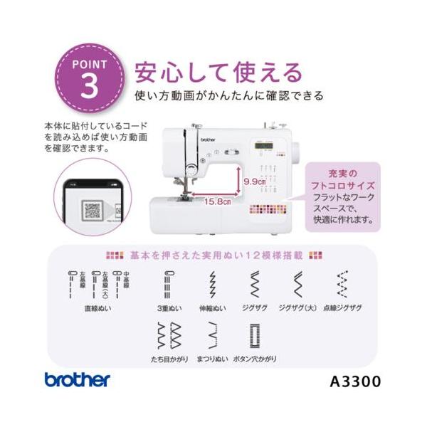 【長期保証付】ブラザー(brother) A3300 コンピュータミシン 初心者向け 全自動ボタン穴かがり 下糸クイック 液晶ディスプレイ